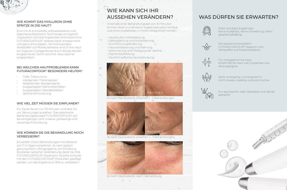 Futuracontour® bietet tiefe Penetration von Wirkstoffen und schnelle Sichtbarkeit der Ergebnisse nach der ersten Behandlung.